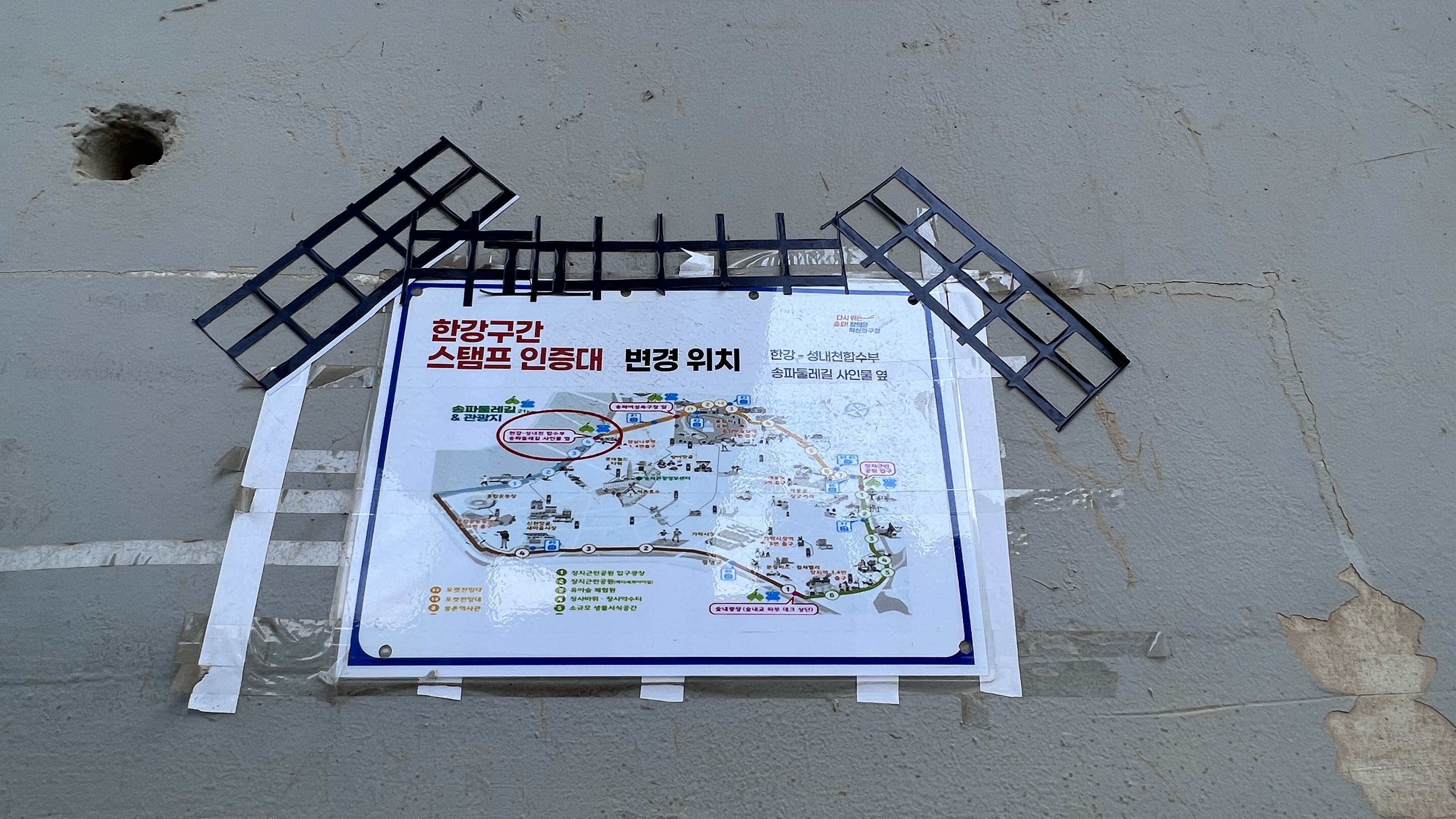 스탬프함의 위치는 코스의 종료 점인 잠실나루역 근처로 옮겨져 있었다. 완전 반대쪽이라는 사실이 더 배신감이 들었다.