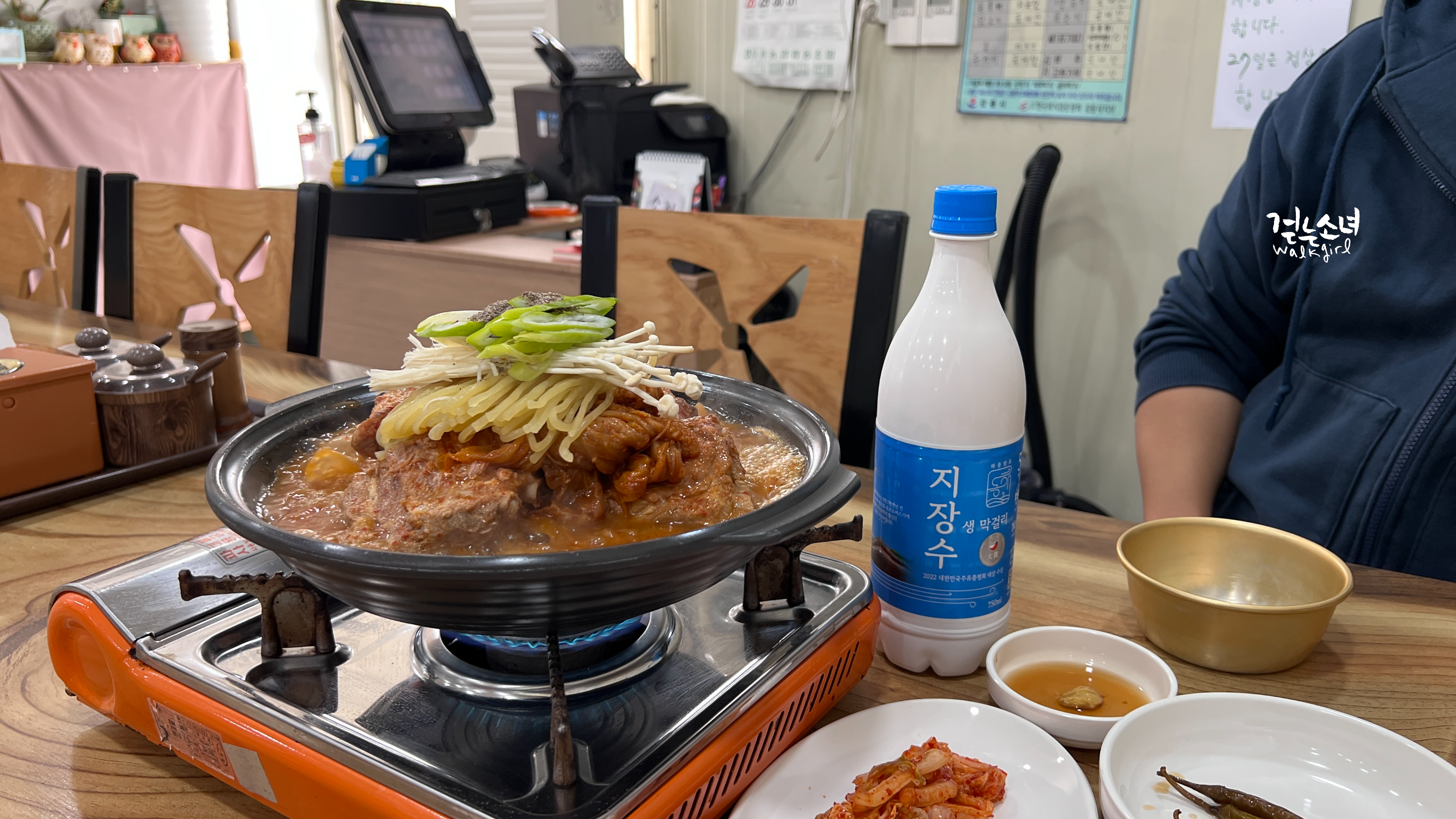마침 지역 막걸리로 지장수 막걸리를 팔고 있어서