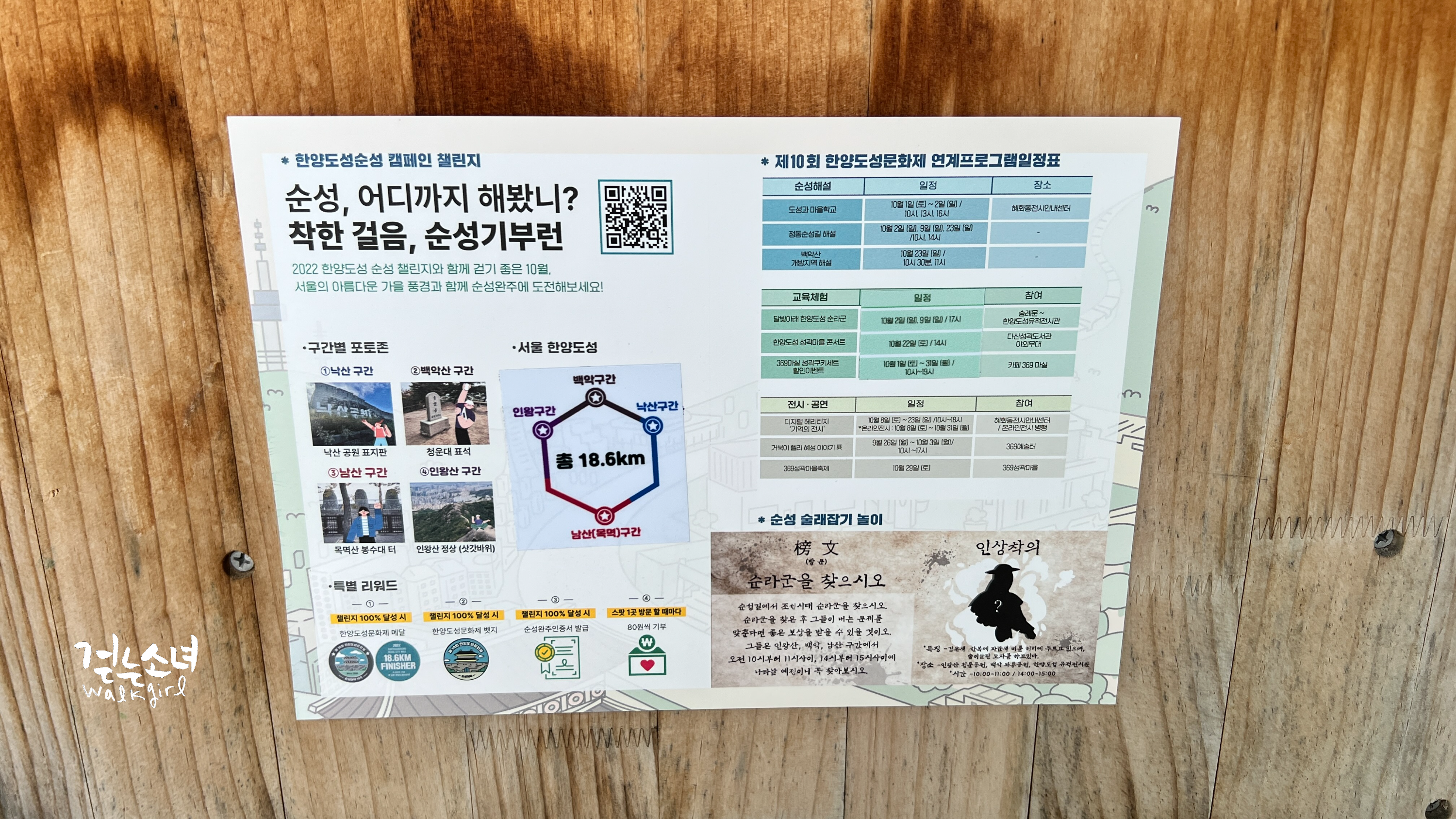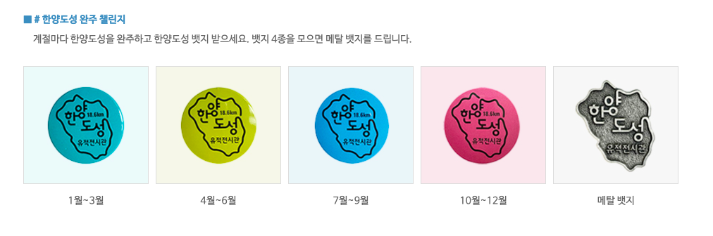 한양 도성길은 처음에는 한 번만 돌아도 금속 뱃지를 증정했었다.