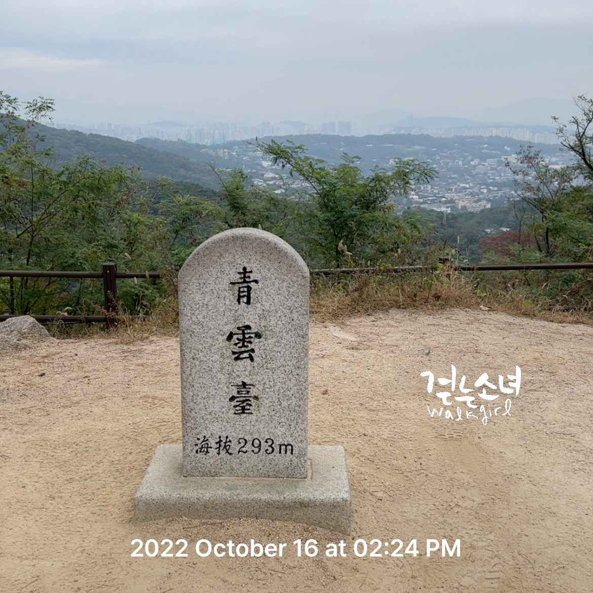 정상을 지나서 청운대 비석을 만나면 인증샷도 남기고